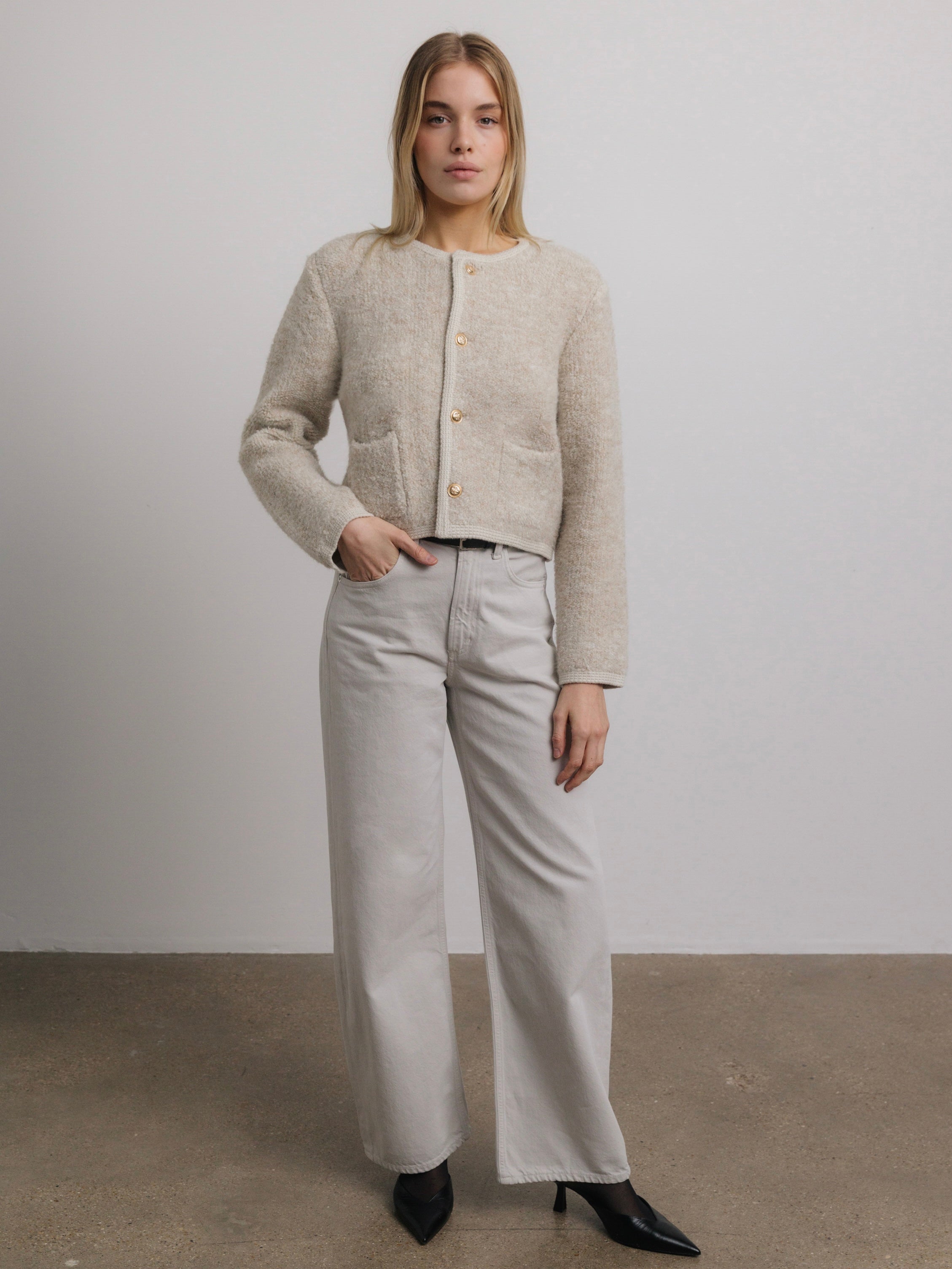 Knitted from a cozy wool-blend, our Dani cardigan features gold statement buttons and ribbed trims to define the classic silhouette. Layer a simple tee underneath and pair with jeans or tailored pants for a chic, yet effortless look.