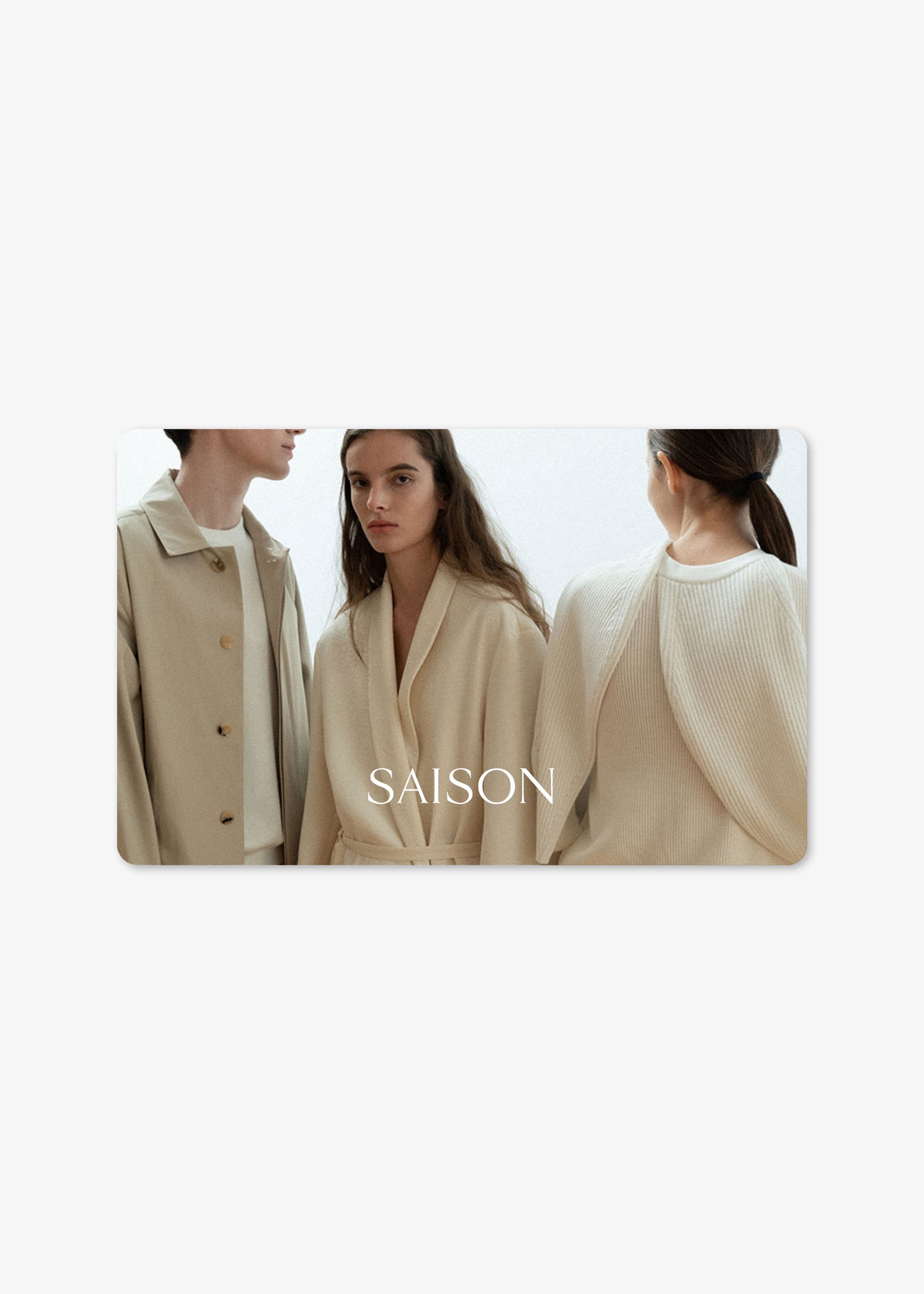 Gift card may be applied during the checkout process and the available balance will be applied to your purchase. Gift cards have no expiration date. Once delivered, gift cards are final sale and may not be redeemed for cash or refunded for any reason. Merchandise purchased by a gift card and returned will be subject to Saison's return policy. If the merchandise is eligible for return and was originally purchased with a Card, and the return is made within the return window, the refund will be issued in the form of a new gift card.