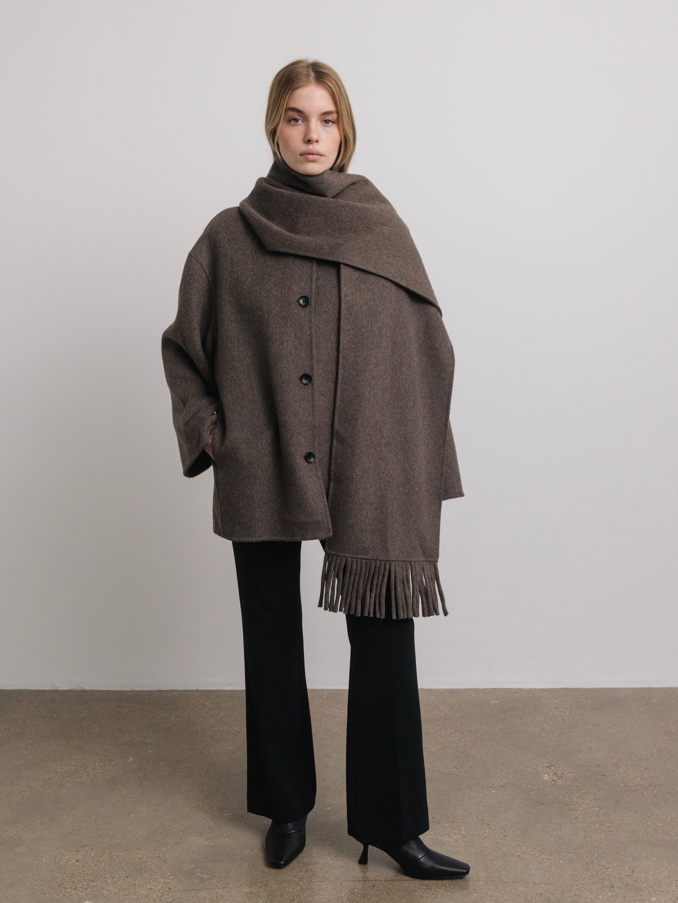 Our Liv coat makes winter dressing easy - it comes with a matching scarf for an effortless look. Made from an ultra-soft wool-camel blend and designed for an oversized fit with dropped shoulders, wide sleeves, and patch pockets, it’s a beautifully versatile piece that will slot seamlessly into your daily rotation. Complement the hip-grazing length with straight trousers.