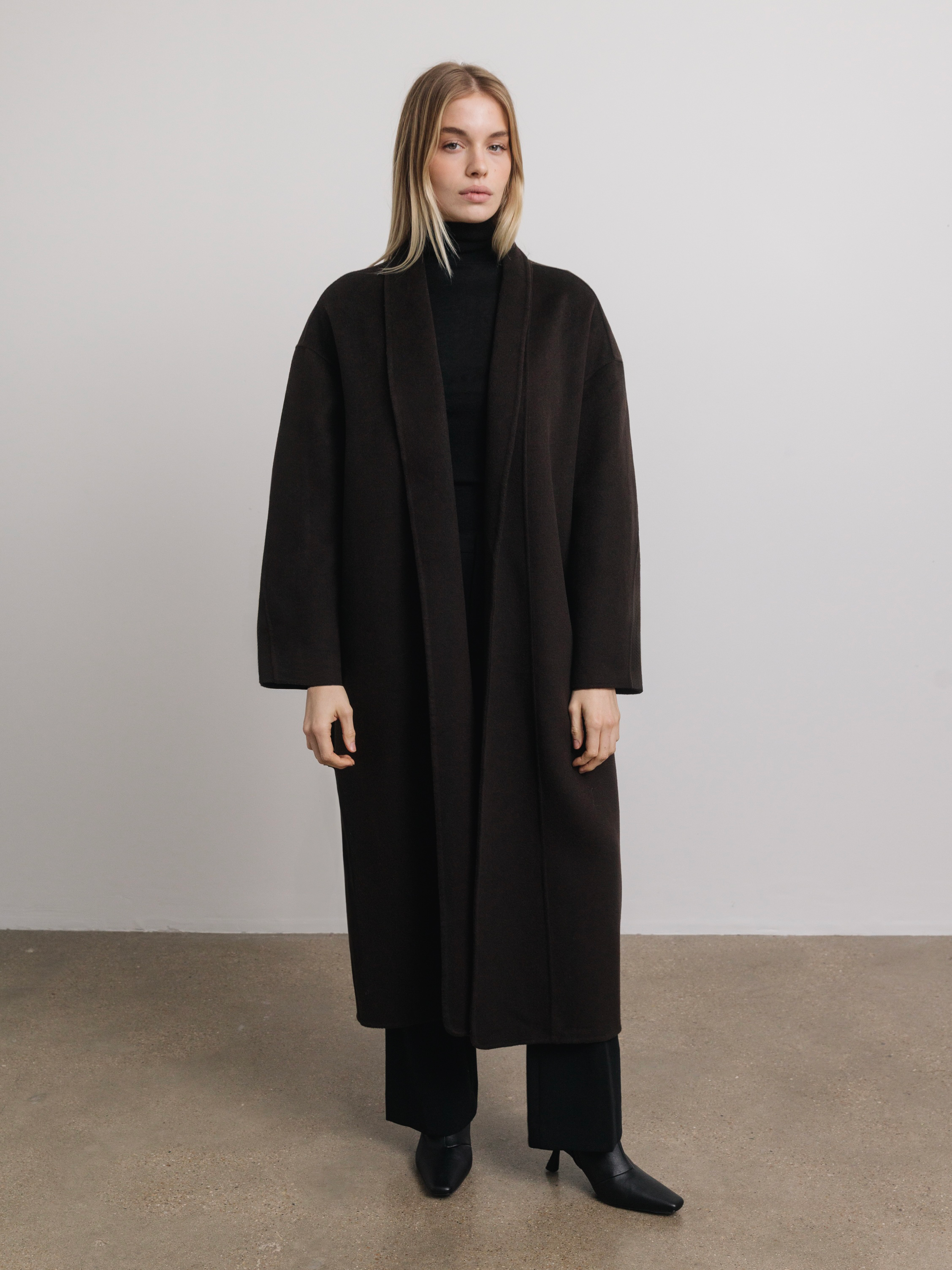 Our timeless Emery coat looks chic slipped on over nearly anything in your wardrobe, from knitwear to tailoring. Made from an incredibly soft wool in an oversized silhouette and finished with a subtle shawl collar and a self-tie belt, it’s a beautifully versatile piece that will slot seamlessly into your daily rotation.