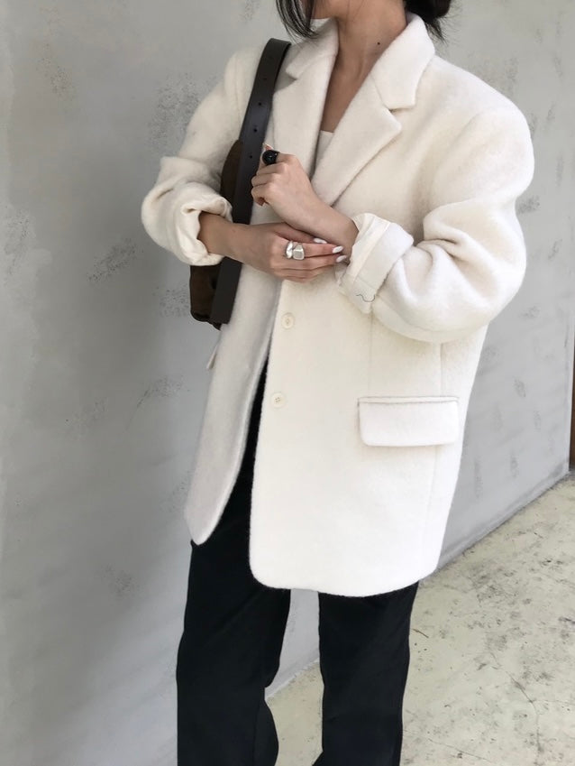 The Farrow Blazer is a sophisticated jacket that will elevate any look. It is tailored to a slightly oversized, modern fit and features a hidden front closure and modest shoulder pads to emphasize its boxy shape.