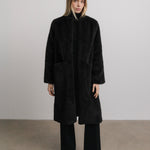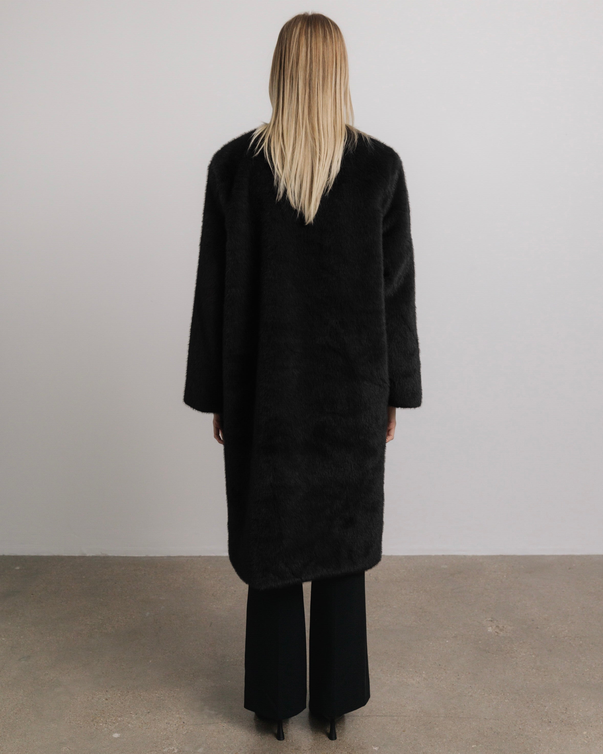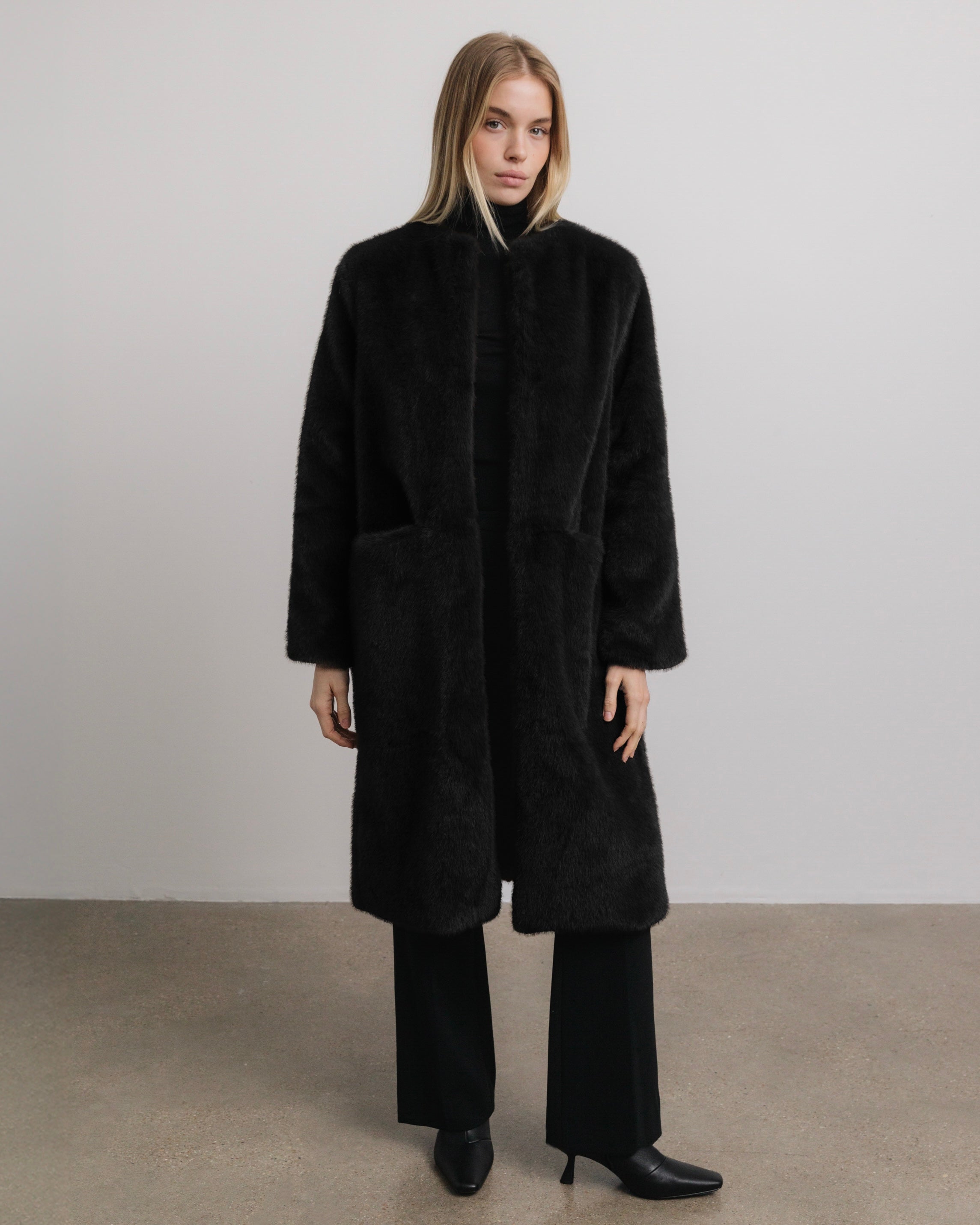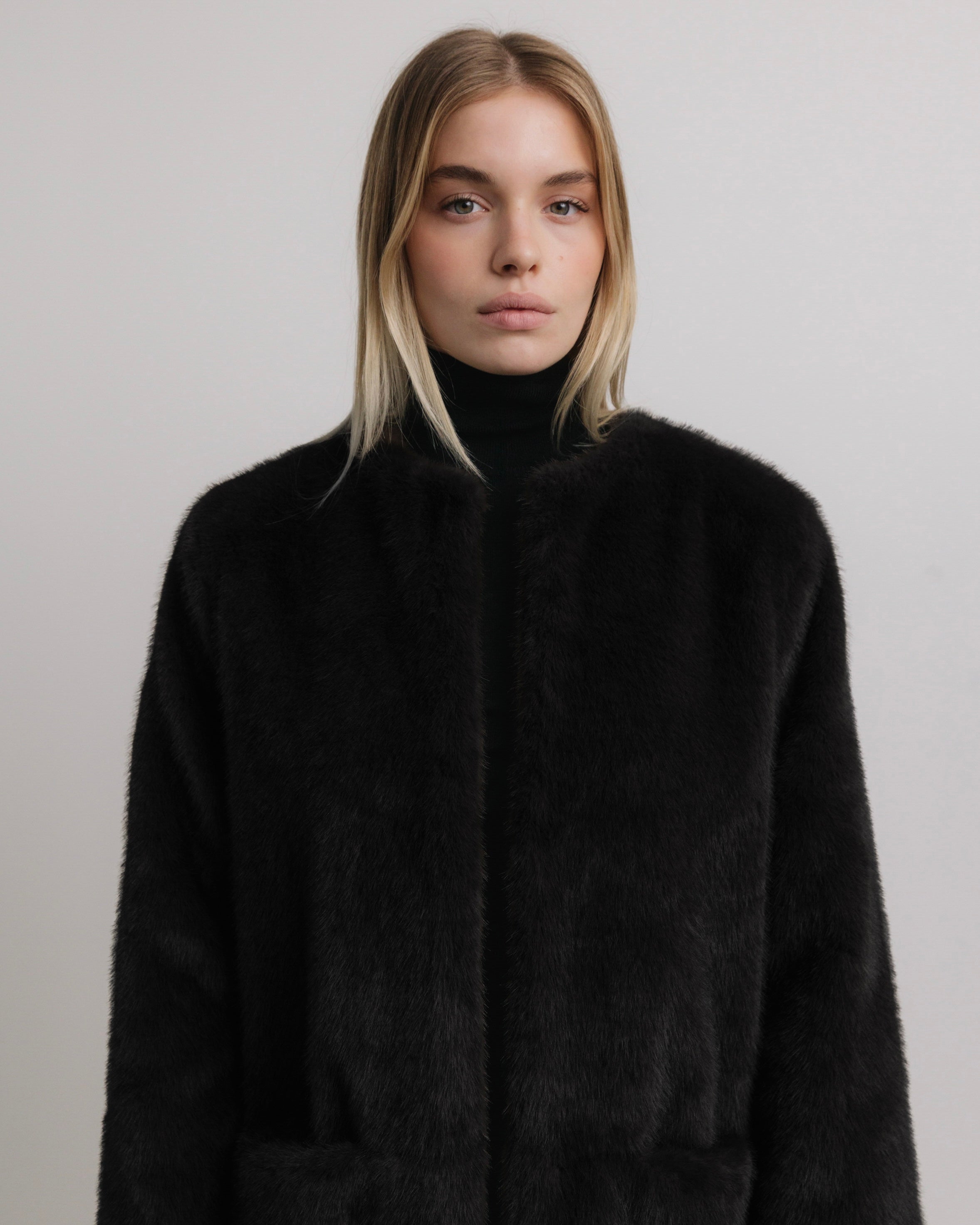 Our Harper faux fur coat is one of this season’s hero pieces due to its classic silhouette. Wear yours over a tonal knit and trousers for an effortless look.