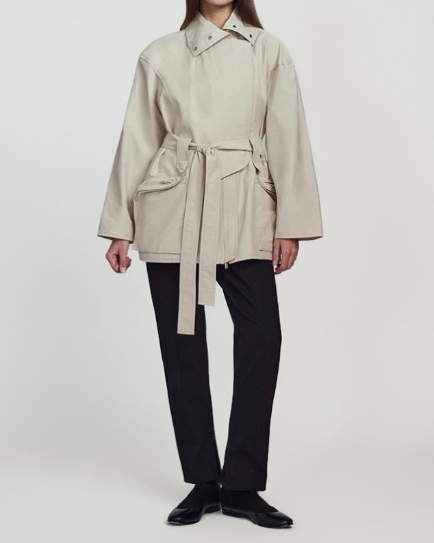 Our Zahra jacket offers a cool re-interpretation of the classic trench. Crafted from structured cotton, it features a funnel neckline and plenty of pockets for added functionality. Use the self-tie belt to cinch the relaxed fit.
