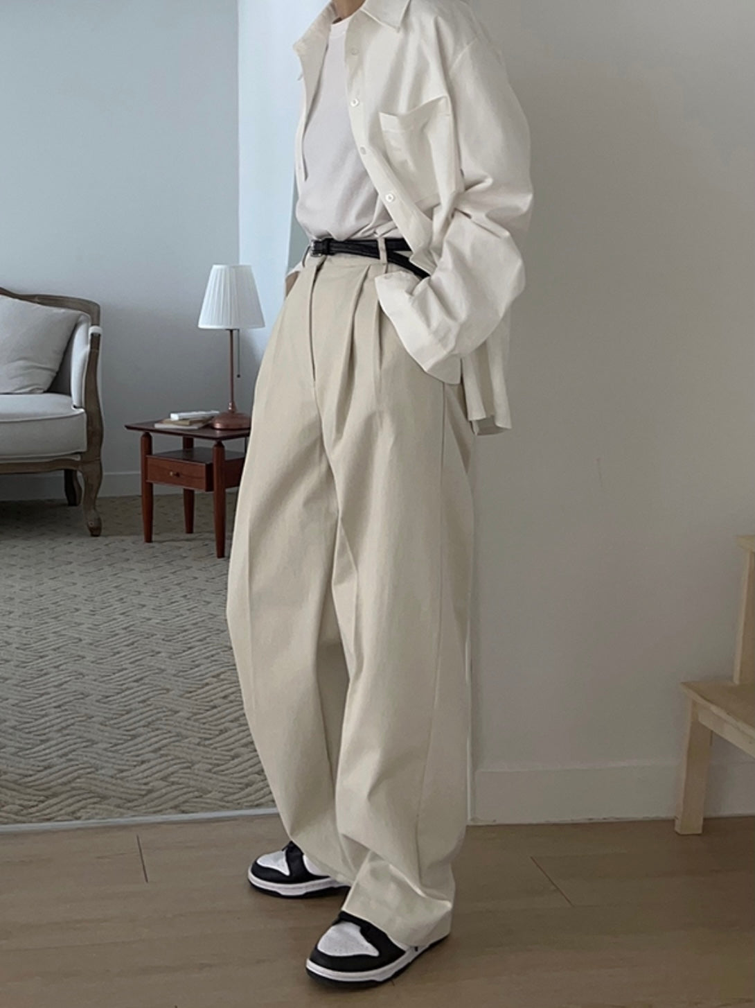- Double pleated front