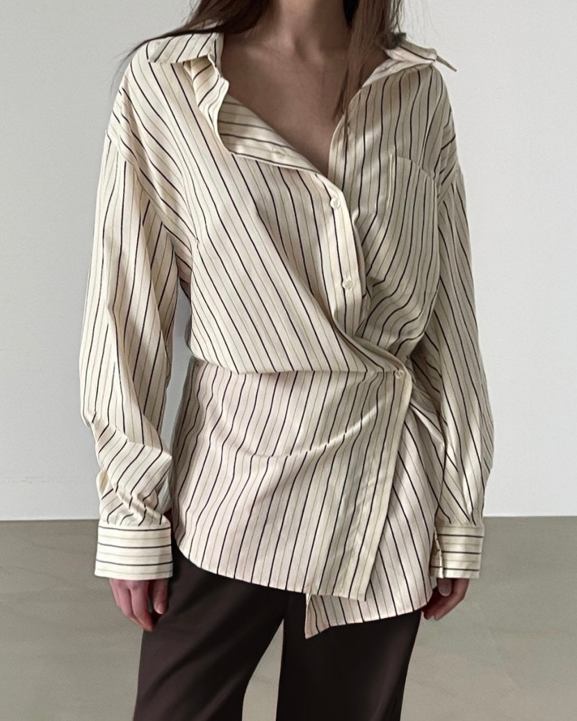 Astrid Asymmetric Striped Cotton Shirt in Pale Yellow