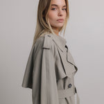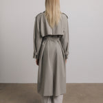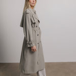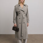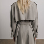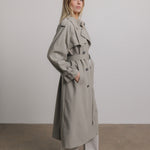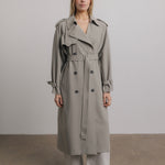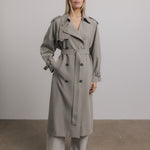 No capsule wardrobe is complete without our versatile Penelope trench coat. Made from a mid-weight crepe, it’s designed for a loose double-breasted silhouette, which makes it perfect for layering over knitwear. Use the belt to cinch in the loose shape.