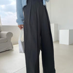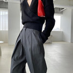High waisted menswear-inspired pant in a lightweight cotton-blend with double pleated front, relaxed leg, front slash pockets and back welt pockets. Style yours with a cropped knit.