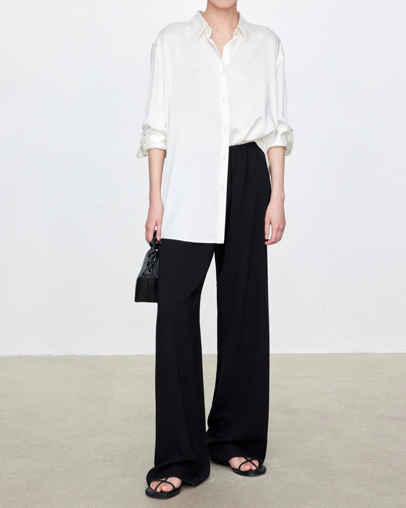 - Mid-weight, fluid, non-stretchy fabric