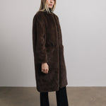 Our Harper faux fur coat is one of this season’s hero pieces due to its classic silhouette. Wear yours over a tonal knit and trousers for an effortless look.