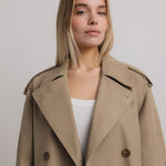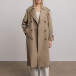 Our take on the timeless trench coat, tailored from a smooth cotton gabardine. Perfect as a statement piece or light spring coat, this versatile piece ensures easy layering. It's designed for an oversized fit with all the classic details - a lapel collar, double breasted button fastening, belted cuffs, and slanted side pockets. Wear with tailoring for an elevated look.