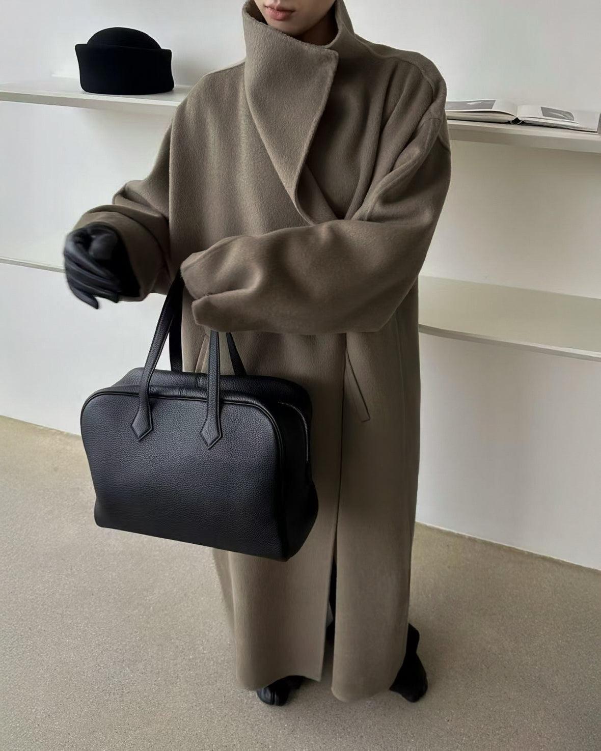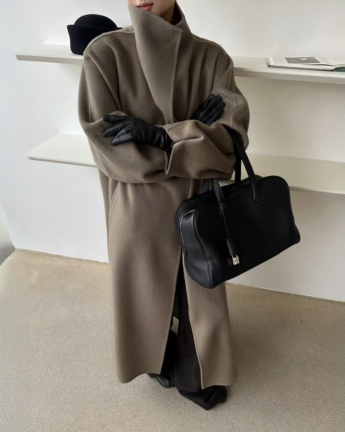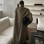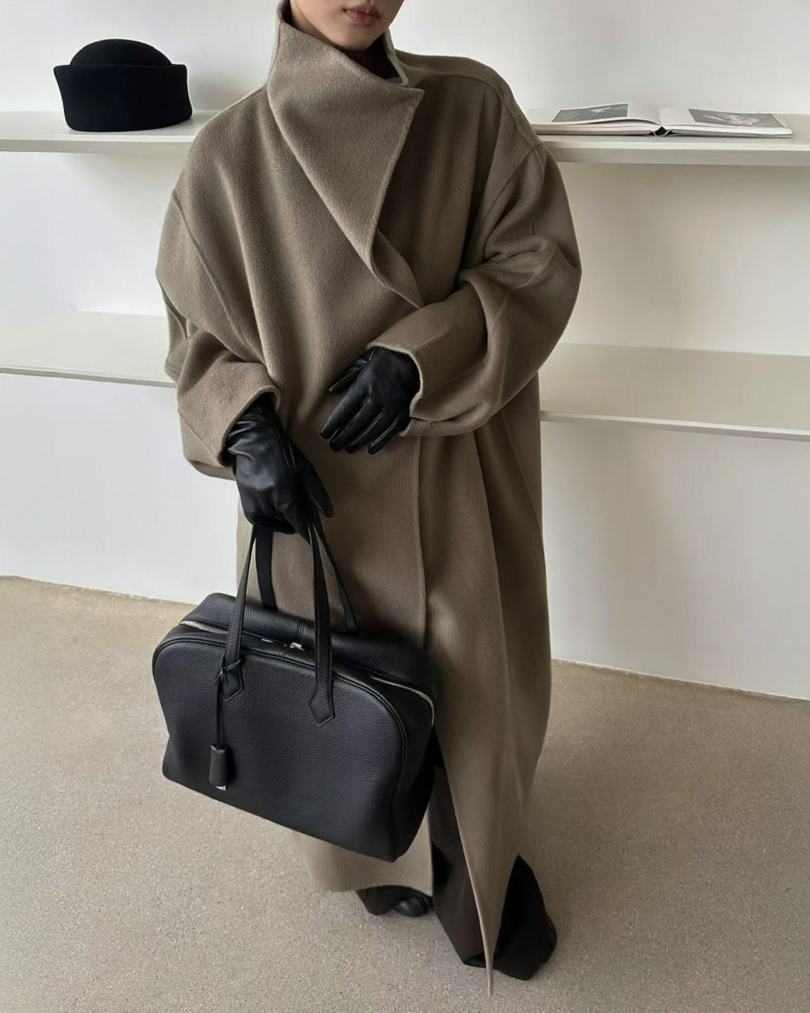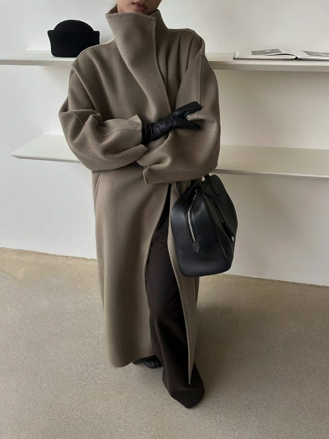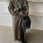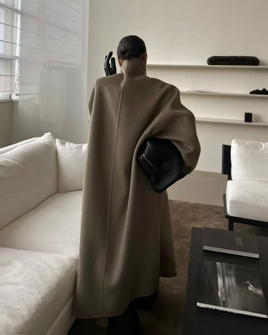 Our Wren coat features a wrap-style funnel collar and dropped shoulders, blending warmth, elegance, and structure in one dramatic silhouette. Wear yours over a tonal knit and trousers for an effortless look.