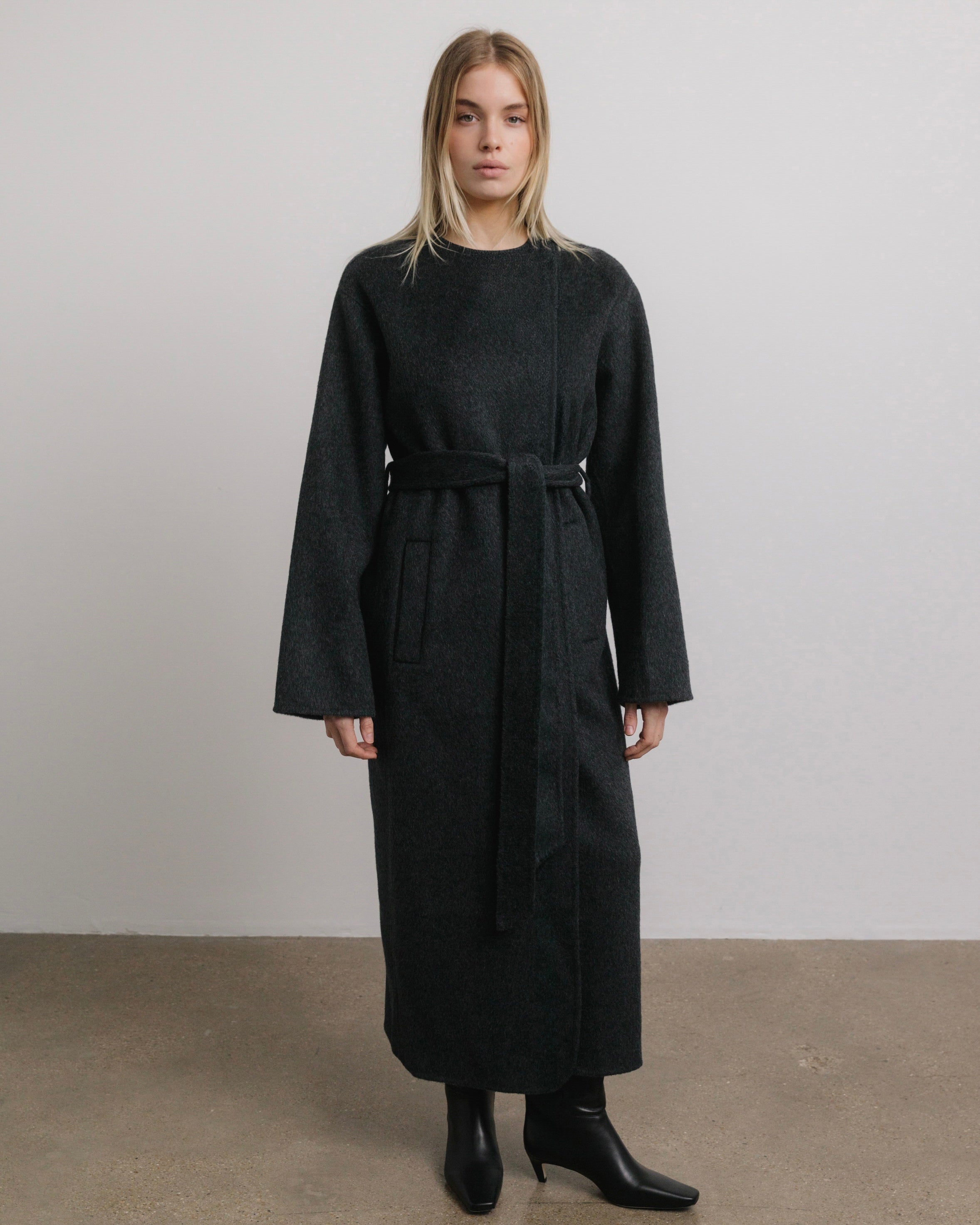 Crafted from pure wool with a luxurious double-faced finish, the Eloise coat transforms winter dressing into an art form. Its relaxed silhouette features dropped shoulders, wide sleeves, and side pockets and a detachable belt. Drape the matching scarf around your neck for extra warmth and style. It’s a beautifully versatile piece that will slot seamlessly into your daily rotation.