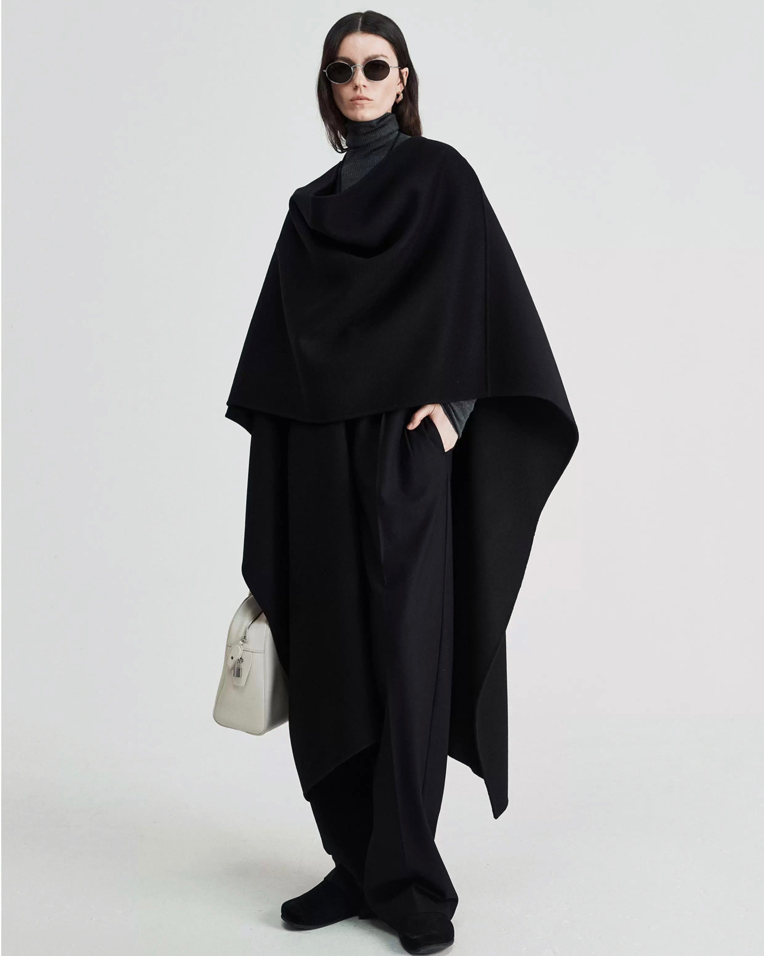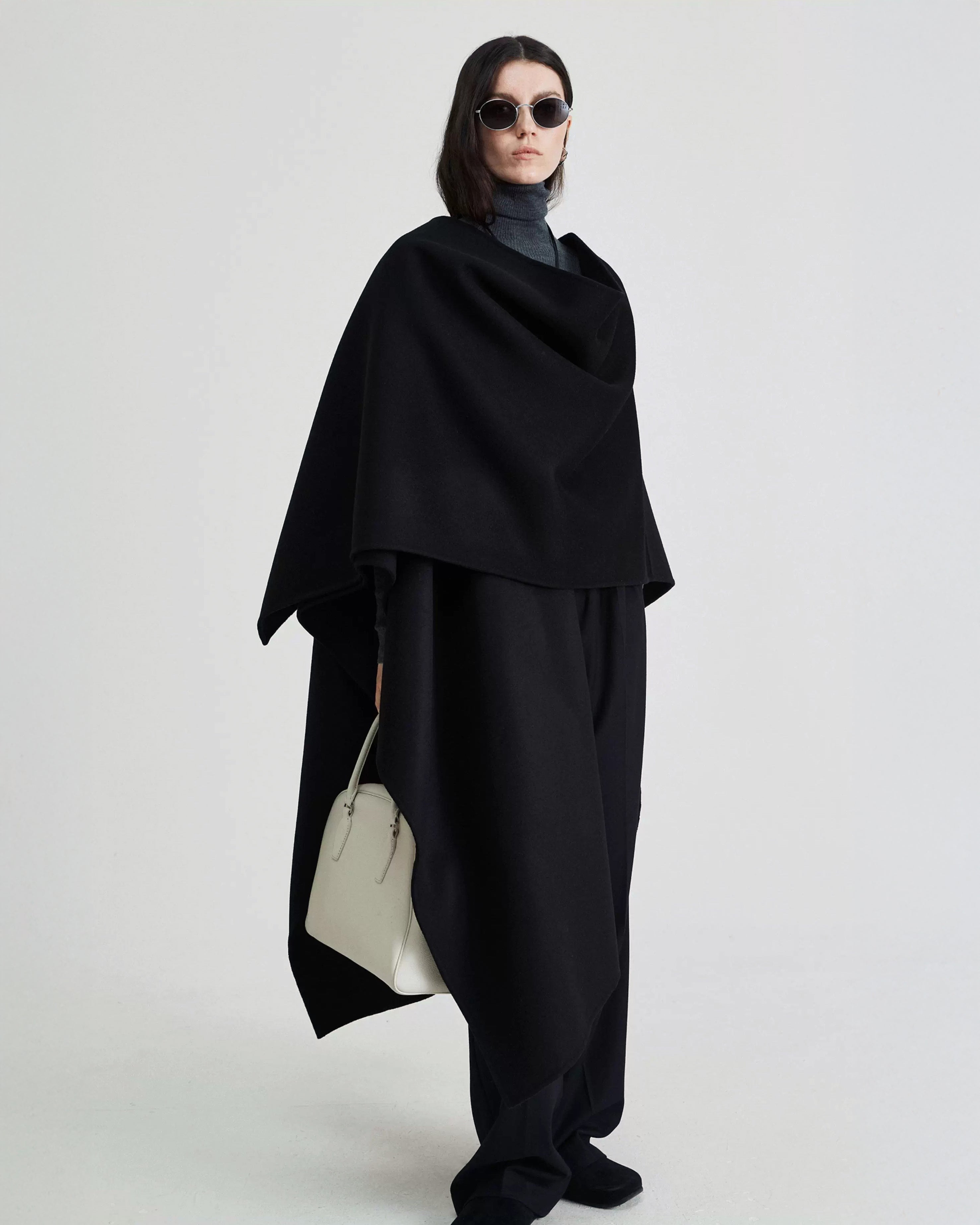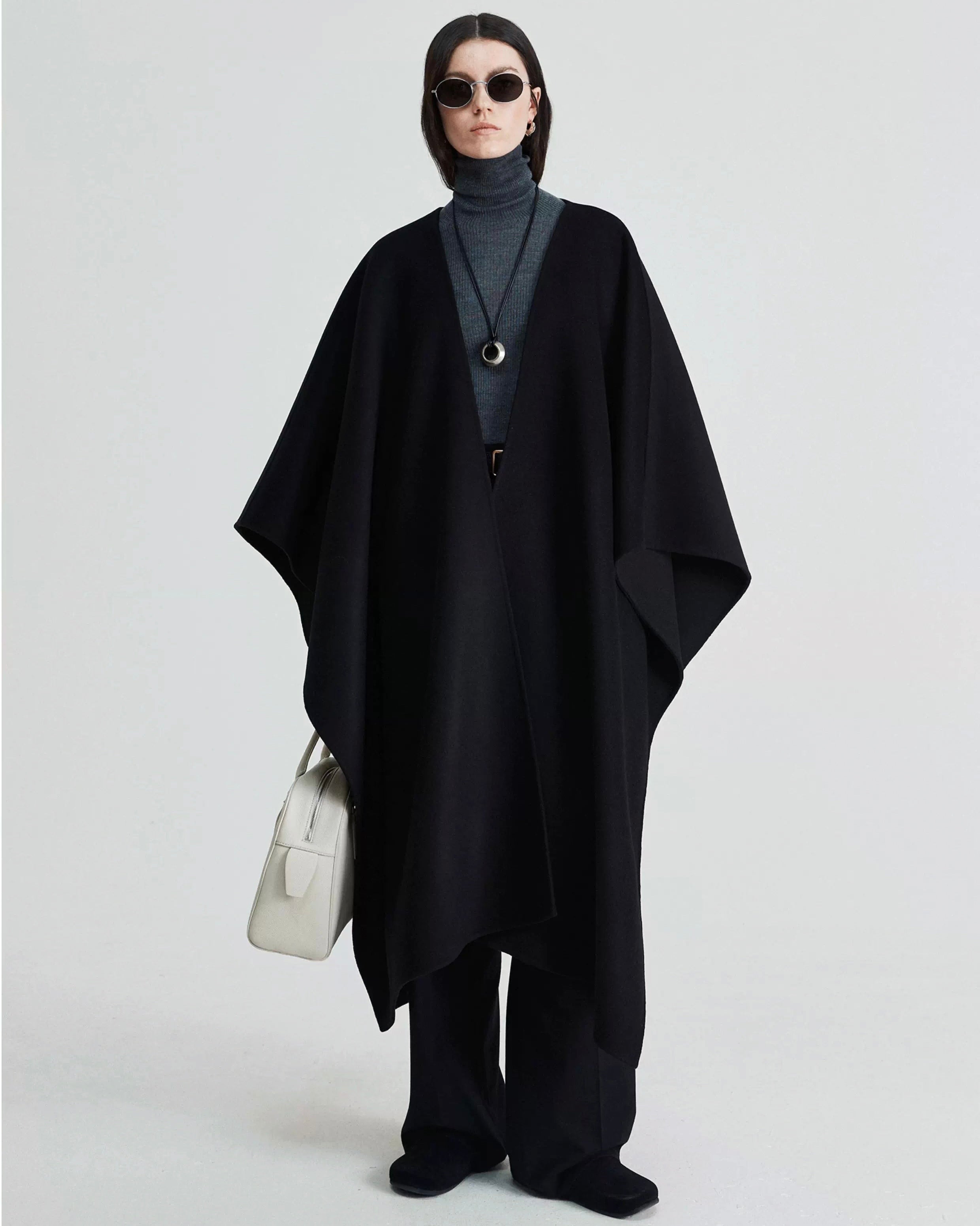 Our Maren wool cape makes a chic alternative to your usual coat. Drape over the shoulders over a tonal knit and trousers for an effortless look.