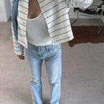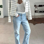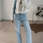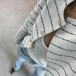 Impeccably tailored from a striped tweed, the straight cut and lightly padded shoulders lend a laid-back look to a classic jacket. Throw it over a T-shirt and jeans for an effortless vibe, or layer it over tailoring to elevate your look.